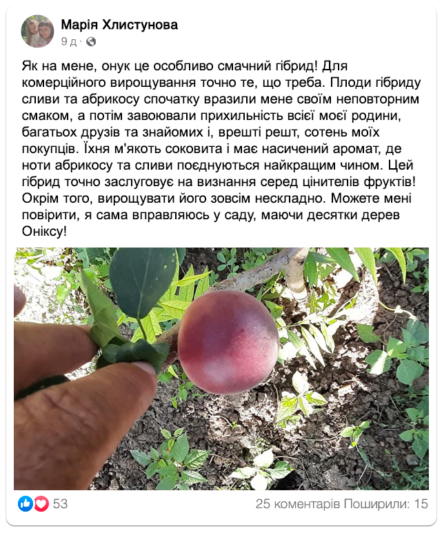 “Onyx” — найсолодший гібрид сливи та абрикоса